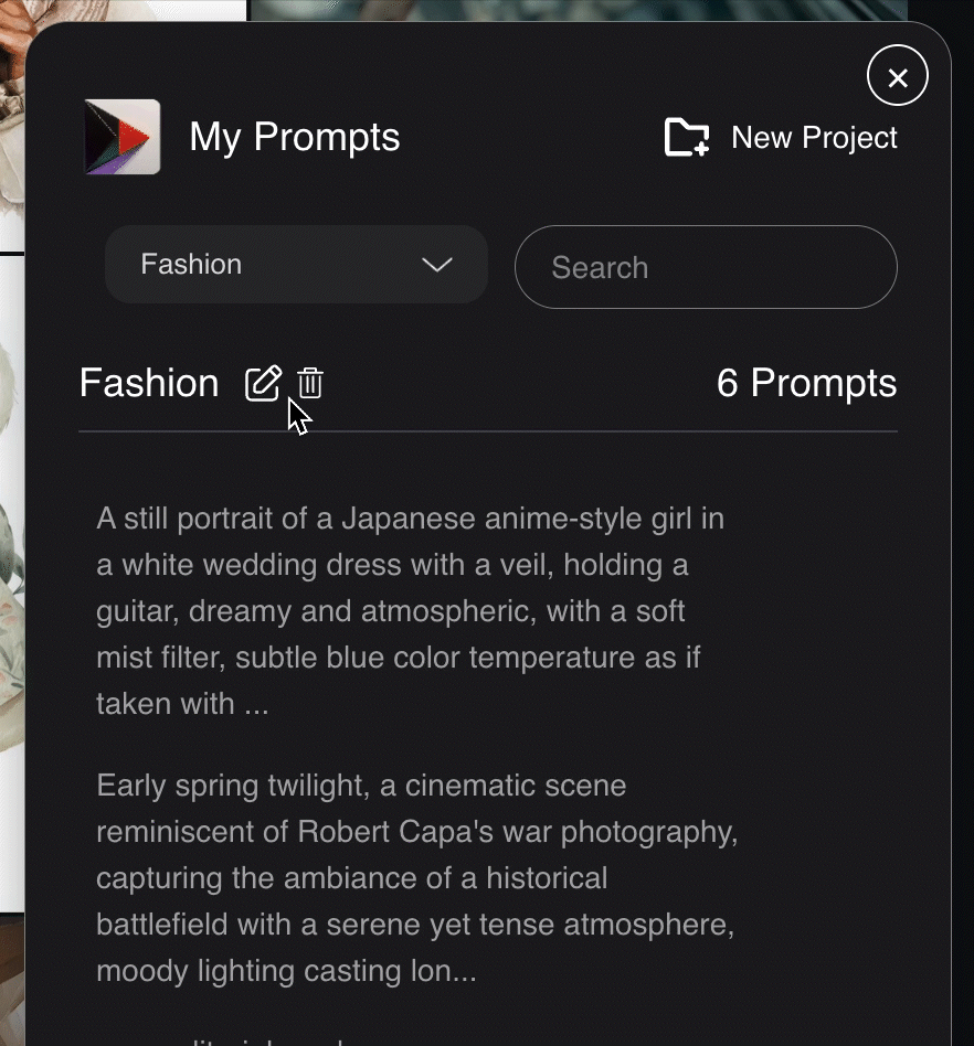 See how every prompt is automatically saved, sorted, and ready to be deployed from powerful project libraries with a single click.