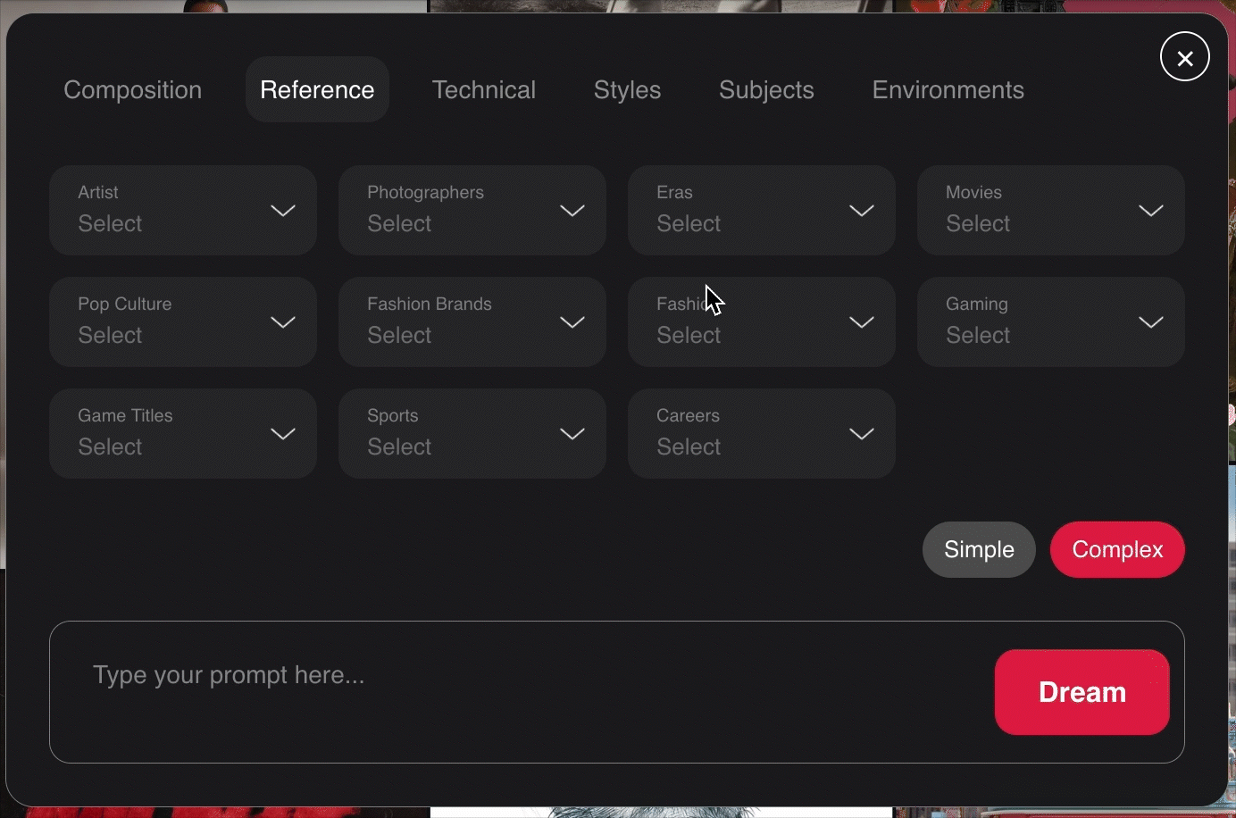 Instantly translate any creative vision into a masterpiece level prompt using simple, powerful dropdowns for every parameter imaginable.